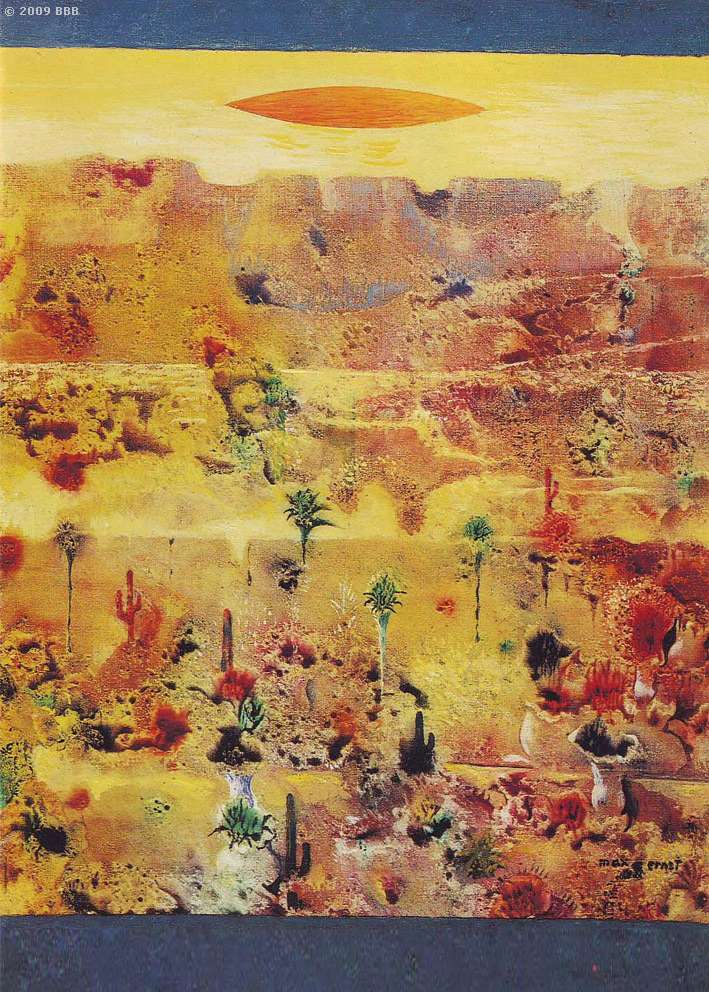 Das Max Ernst Museum Brühl freut sich über einen spektakulären Neuzugang. Das Werk „Arizona desert after rain“ befand sich seit über 30 Jahren in einer Privatsammlung. Es wurde kürzlich dem Max Ernst Museum als Dauerleihgabe zur Verfügung gestellt und wird in der ständigen Ausstellung präsentiert. Es ist ein exquisites und überaus qualitätsvolles Gemälde von Max Ernst, das um 1948 entstand.
