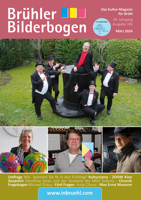 Auch die Brühler Schlosskonzerte veröffentlichten ihr im Mai startendes Jahresprogramm, über das wir in der nächsten Ausgabe des Bilderbogen ausführlicher berichten werden. Und der „brühlermarkt“ schließlich wird wieder zahlreiche bekannte Künstler, Musiker und Chöre – auch aus Brühl – auf der Bühne im Rathaus-Innenhof präsentieren.